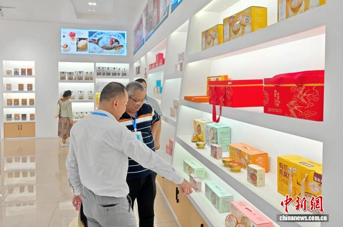 9月14日,“把闽东之光传播开去”——海外华文媒体宁德行活动走进福建宁德,领略闽东的锦绣河山,感知闽东的灿烂文化,此次活动共有12国16家海外华文媒体代表前来参访。图为海外华文媒体代表参观福建天天源生物科技有限公司产品展示区。中新社记者 吕明 摄