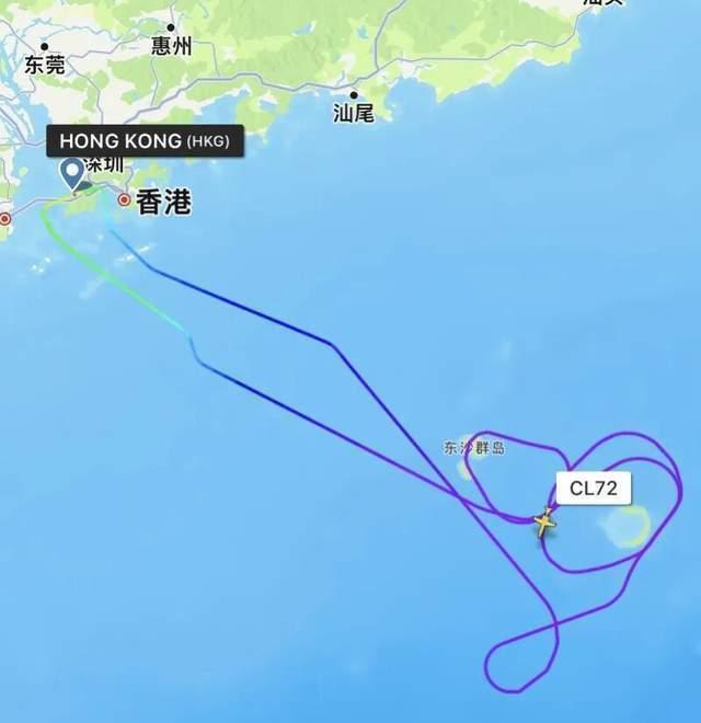 ADS-B信号轨迹显示出飞机勇闯台风眼的航迹