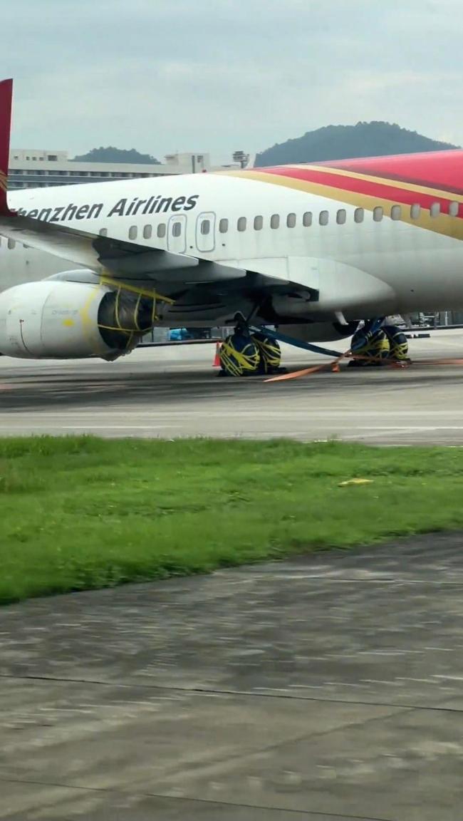 记者尝试私信联系该网友,暂未得到回复。该网友发布视频的定位信息显示为深圳宝安国际机场,视频中被胶带绑住的是深圳航空一架飞机。