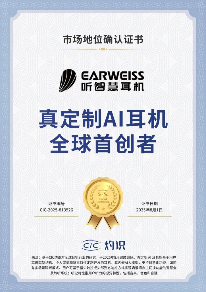 听智慧的定制蓝牙耳机,不仅是技术上的突破,更推动了定制耳机从“高价小众”走向“量产普及”。听智慧通过构建全链路自研体系,结合柔性化生产技术,将复杂的定制流程标准化,让更多用户无需承担传统定制耳机的万元级成本,就能拥有“为我而生”的专属耳机。截至目前,听智慧已累计申请国内外专利118件,技术实力获得伦敦设计大奖、法国DN设计大奖、亚太IAI设计大奖等国际认可,更被CIC灼识认证为“真定制AI耳机全球首创者”。