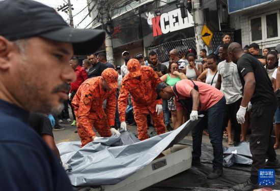 10月29日,在巴西里约热内卢的佩尼亚社区,救援人员将被击毙的犯罪嫌疑人遗体运离。新华社发(克劳迪娅·马尔提尼摄)