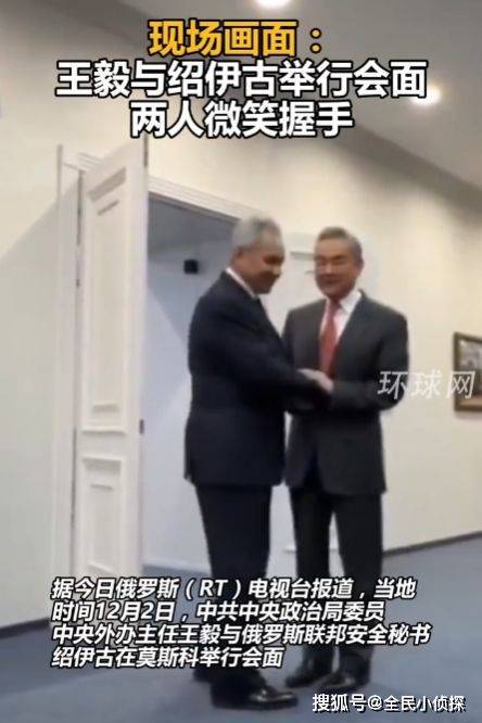 俄方:俄中斩断军国主义头颅有经验 中俄坚定支持彼此立场。12月2日,中国外长王毅访问莫斯科,参加中俄战略安全磋商。俄方对王毅的到访非常重视,绍伊古亲自到会场门外迎接。两人见面后显得十分高兴,握手寒暄后共同前往合影区。