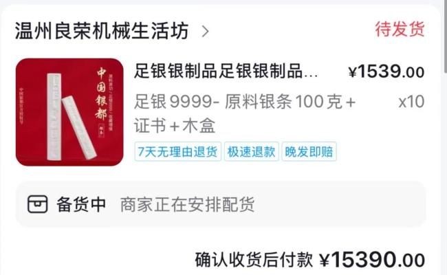 花3.68万网购2400克银条商家拒绝发货 金银涨价引发争议