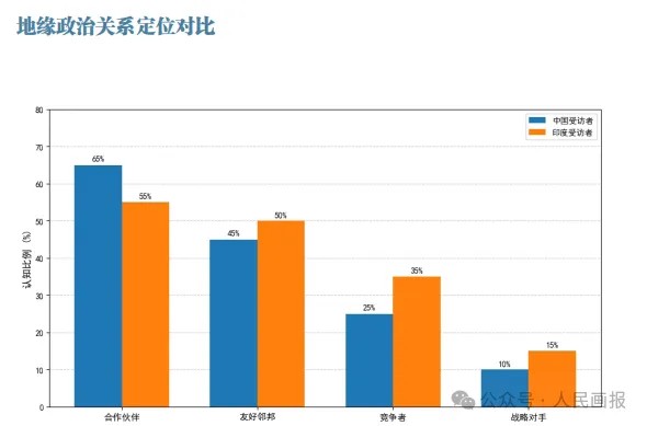 调查数据显示,缺乏互信是两国关系发展主要障碍。中印两国受访者对彼此总体印象均以中性为主。同时,围绕地缘政治、边界问题及战略定位等方面的安全顾虑与情感鸿沟依然显著,构成了双边关系中的重要挑战。