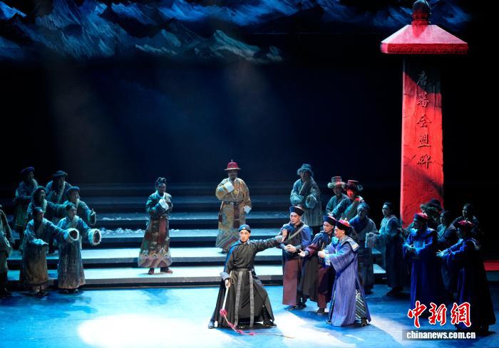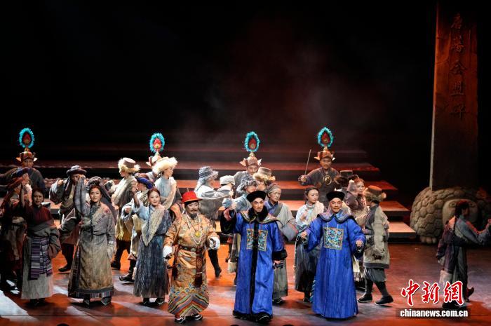 图为藏·粤史诗剧《驻藏·张大人》演出现场。中新社记者 李林 摄