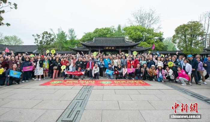 4月13日,400余名新加坡游客春游扬州,开启“美食嘉年华”之旅。扬州市文广旅局供图