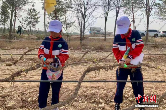 宁夏贺兰山东麓开展葡萄展藤研学活动 把课堂搬到田间地头