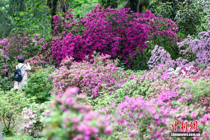 4月15日,游客观赏盛开的杜鹃花。中新社记者 张畅 摄