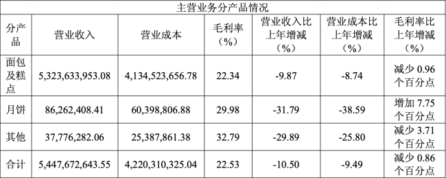 体现在销量层面,2025年,桃李面包的面包及糕点品类销售量同比下滑10.95%;月饼销量下滑了37.04%;其他品类销量下滑了28.12%。
