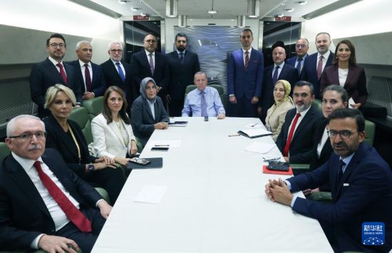 新华社安卡拉10月14日电(记者熊思浩)土耳其总统埃尔多安14日表示,加沙地带停火协议必须永久有效,且各方不得违反。10月14日,土耳其总统埃尔多安(中)在出席沙姆沙伊赫峰会后返回土耳其的专机上与随行