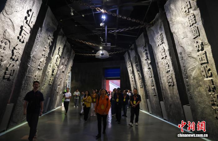 图为海外华文媒体代表参观辛亥革命博物院。中新社记者 张畅 摄 图为在辛亥革命博物院海外华文媒体代表体验XR沉浸式大空间作品《穿越·汉阳兵工厂》。中新社记者 张畅 摄