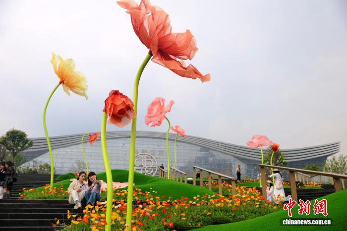 3月25日,四川成都,市民打卡巨型“虞美人”。中新社记者 张浪 摄 3月25日,四川成都,市民打卡巨型“虞美人”。中新社记者 张浪 摄