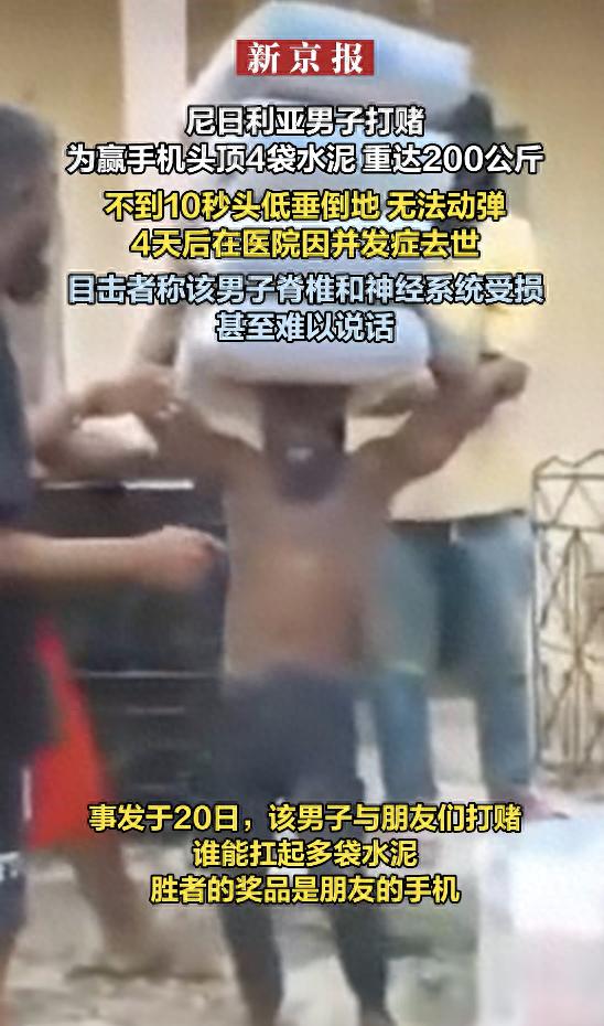 尼日利亚男子为赌手机扛400斤水泥被压死 悲剧引发关注