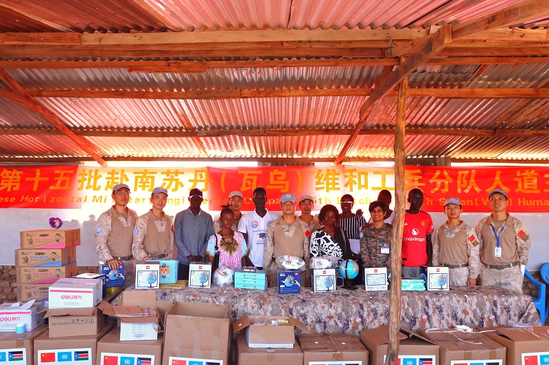 中国赴南苏丹(瓦乌)维和工兵分队在当地小学开展人道主义援助活动